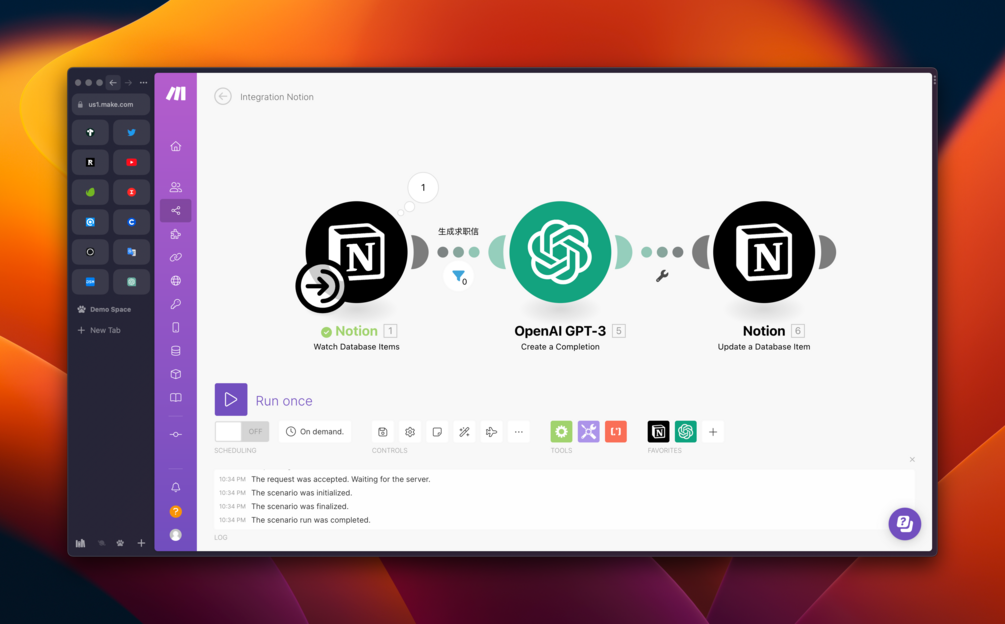 使用 Make 配置 OpenAI GPT 与 Notion 模板联动,自动根据职位描述和你的优势生成求职信。
